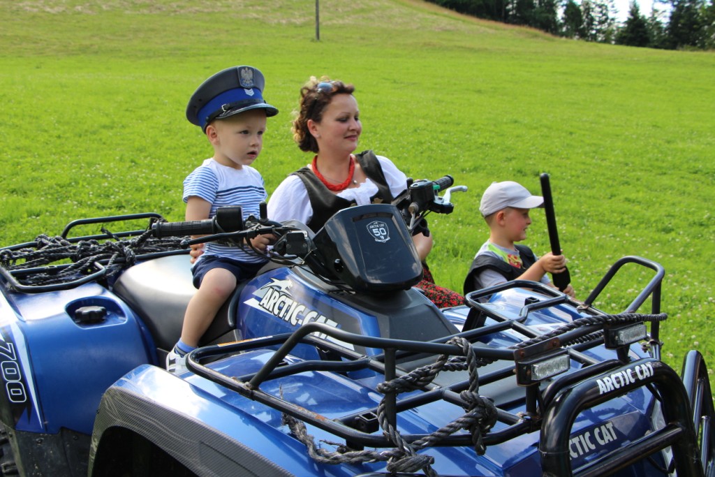 - bezpieczeństwo i ochrona - prowadzone przez Powiatową Komendę Policji, Górskiego Ochotniczego Pogotowia Ratowniczego oddział Podhalański oraz naszą Ochotniczą Straż Pożarną. Powiatowa Policja z Nowego Targu zaprezentowała na swoim stoisku elementy swojego wyposażenia oraz udostępniła do obejrzenia dzieciom i innym chętnym  służbowe  policyjne pojazdy. Pracownicy policji prowadzili również pogadanki dla dzieci jak bezpiecznie wypoczywać nad wodą w ramach ogólnopolskiej kampanii informacyjnej pod hasłem „Kręci mnie bezpieczeństwo….. nad wodą”. Górskie Ochotnicze Pogotowie Ratunkowe  zaprezentowało swój sprzęt  ratowniczy oraz  przeprowadzono symulowaną akcję ratowniczą poszkodowanego turysty. Natomiast druhowie naszej jednostki Ochotniczej Straży Pożarnej zaprezentowali akcję ratowniczą z użyciem dwóch prądów wodnych wraz z przepompownią zasilającą samochód w potrzebną wodę.