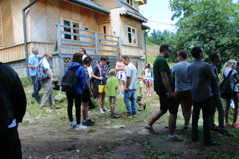 Wraz z grupą z Ochotnicy Dolnej przeżyliśmy czwartek 22.07. jako dzień turystyczny. Rozpoczęliśmy go w kaplicy w Jamnem od polsko-włoskiej Mszy świętej, którą koncelebrowali dwaj włoscy księża, ksiądz proboszcz Stanisław Kowalik i wikariusze: ks. Paweł Kita i ks. Paweł Łebski. W czasie liturgii nie zabrakło śpiewów przygotowanych przez naszą scholę, gości z Włoch i p. Ludwika Czajkę. Następnie pieszo udaliśmy się na Skałkę, by na własnych nogach podążać szlakiem Jana Pawła II, który przed 60. laty gościł w Ochotnicy na obozie narciarskim. Wyprawie do Wojtyłowej Gazdówki przewodniczył p. Zdzisław Błachut, który oprowadził wszystkich po wnętrzu i zapoznał z historią miejsca. Następnie przeszliśmy pod bacówkę u Jarka Buczka, który wraz z żoną przygotował dla nas gościnne przyjęcie i poczęstunek złożony z regionalnych wyrobów. Była to też okazja do poznania specyfiki pracy na bacówce i przyjrzenia się z bliska hodowli owiec. Mimo wielu wrażeń, młodzieży nie brakowało energii do wspólnej zabawy na świeżym powietrzu, a całości towarzyszyła góralska muzyka w wykonaniu p. Ludwika. Nieoceniona okazała się także pomoc p. Janiny i p. Janusza, którzy niestrudzenie towarzyszyli nam w każdej wyprawie jako tłumacze. Po trudach wędrowania zeszliśmy do centrum, gdzie w Wiejskim Ośrodku Kultury czekało nas zwiedzanie – pod okiem kierownika - muzeum regionalnego i lotniczego. Sprawdziliśmy też swoją wiedzę w quizie polsko-włoskim przygotowanym przez p. Teresę i młodzież. Drobne nagrody i zabawne odpowiedzi wywołały mnóstwo radości. Po poczęstunku przygotowanym w WOK-u wraz z KGW, młodzież dała się porwać do wspólnej zabawy przy tańcach integracyjnych i muzyce zespołu Halni. Nie zabrakło także czasu na modlitwę i zapoznanie się z sylwetkami polskich świętych i błogosławionych.