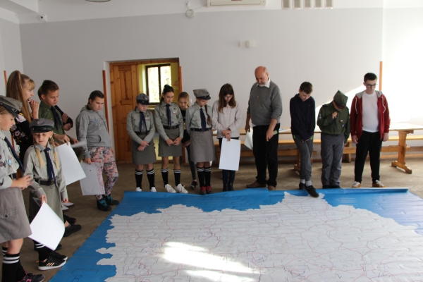 Podczas prowadzonej prelekcji uczestnicy warsztatów mieli za zadanie samodzielnie odszukać na mapie miejsca, których dotyczyły fakty historyczne omawiane przez naszego wykładowcę.